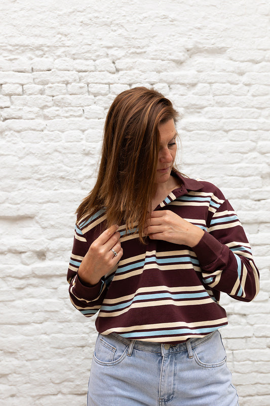 UitverkochtPIQUE polo - Prune stripes